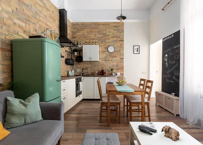 Een ingerichte kitchenette wordt aangevuld met een oven en een vaatwasser. Boedapest ligt op afstand van 25 km van het appartement en Rákóczi tér metrostation bevindt zich op 350 meter ervandaan.